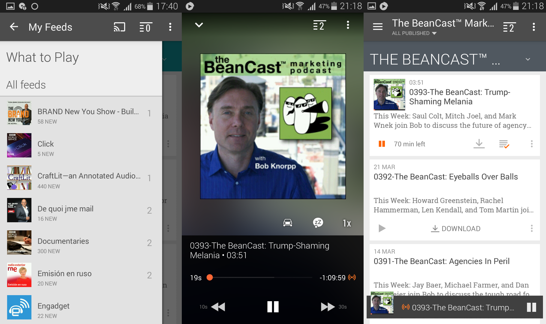 – za możliwość uporządkowania wszystkich słuchanych podcastów, dzięki czemu nie zapominam o żadnym odcinku moich ulubionych programów. Za pomocą kilku kliknięć mogę sprawdzić, które z słuchanych przeze mnie podcastów mają nowe odcinki i ściągnąć je na telefon do odsłuchania offline w dogodnym momencie,